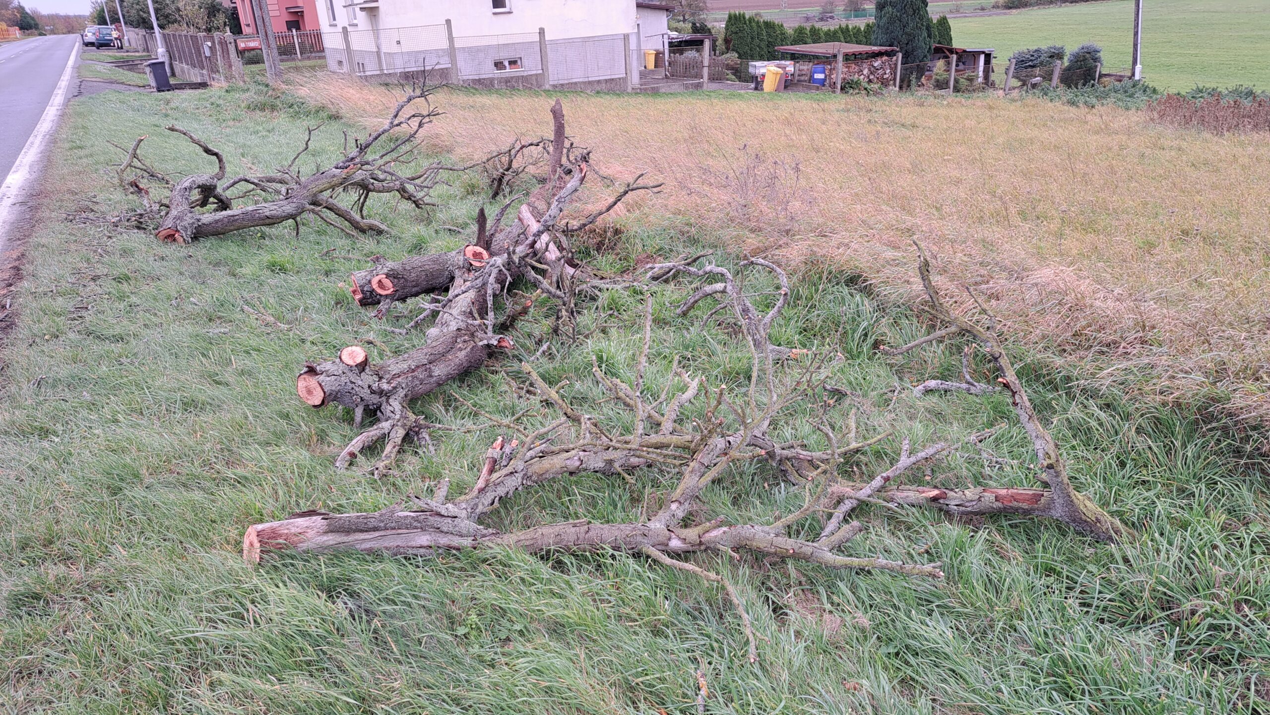 Řidič se snažil situaci vyřešit brzděním, ale aby se padajícímu stromu vyhnul, strhl řízení a skončil v příkopu, kde narazil do dalšího stromu. Naštěstí se při nehodě nezranil.